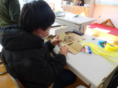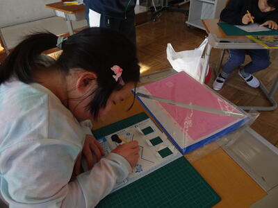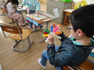 2年生が図工「まどのある たてもの」を作っていました。今日は窓をカッターで慎重に切っていました。