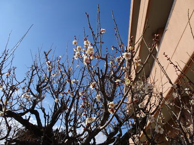 昨日は立春の言葉通り暖かな一日でしたが、今日はさらに春を感じさせるような陽気に。ふと校庭の梅の木を見ると、