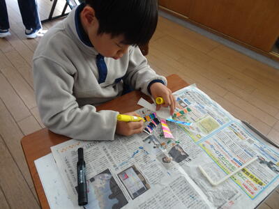 5年生の教室に行くと、何か作っていました。「6年生を送る会」の準備だったようです。