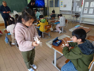 1・2年生が、生活科の時間にけん玉体験をしました。講師の先生は、主任児童委員でけん玉名人の鈴木さんです。