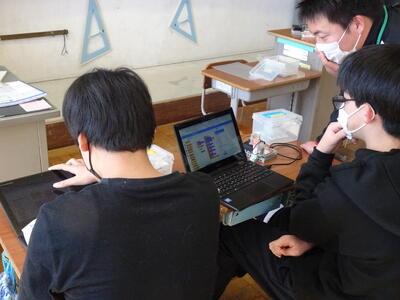次の時間には、授業参観で発表する内容を確認しながら、班で練習していました。さすが6年生、上手にICT機器を使っています。
