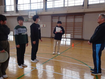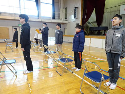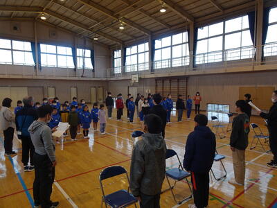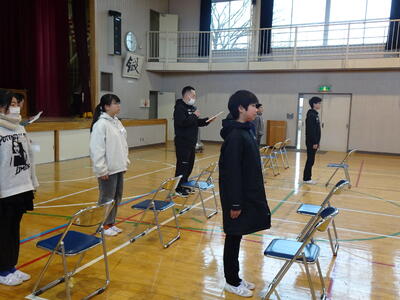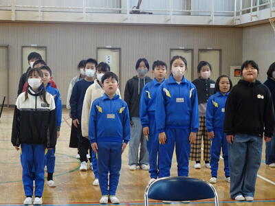 初めての合同練習なので、みんなちょっと緊張気味でした。呼びかけでは、6年生が、6年間の思い出やお世話になった方々への感謝の気持ち、中学校生活への決意などを伝えます。