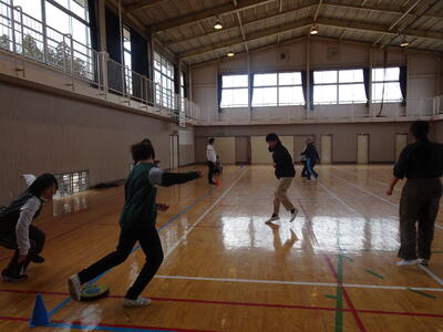 6年生が、「第2回先生との交流会」を開いてくれました。今回は、ドッチビー大会です。