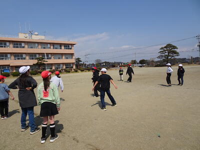 業間の休み時間だったため、ほとんどの児童は校庭で遊んでいましたが、放送が始まるとすぐに行動することができました。