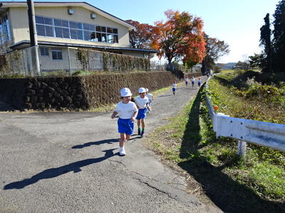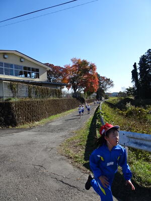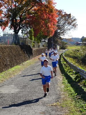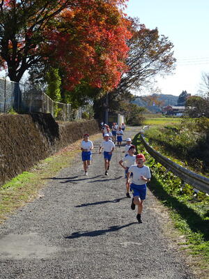 風もなくまさに小春日和の中で、全校生が来週の長距離走大会に向けて、試走を行いました。