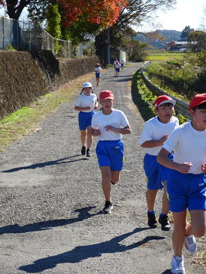 続いて1、2年生。1年生は初めての長距離走でしたが、全員最後までよく頑張って走りました。