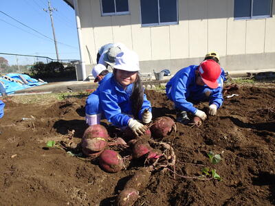 それからも次々に大きなサツマイモが。大きいものはなかなか大変で、一人で無理なときは2人がかりで頑張りました。