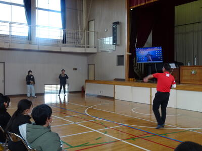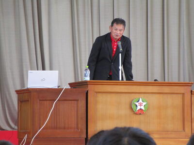 今日は、本校体育館を会場に、親園地区教育講演会を開催しました。4~6年生と、親園小学校6年生が参加しました。演題は「チャレンジすれば超えられる」~多くの出会いと支えの中で~です。