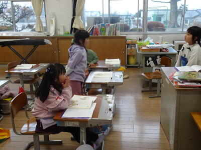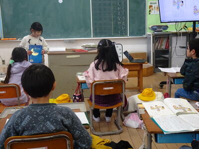 1年生が、国語で自分の好きな本を紹介していました。今回は、「くわしく聞く」学習でもあるので、聞き手も質問したいことを考えながら聞きました。