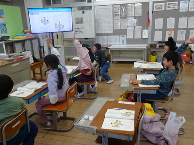 もっと知りたいことを、質問しました。友達の発表をよく聞いたからか、次から次へと手が挙がりました。