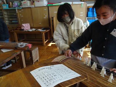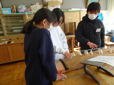 最後の頃にはみんな弾けるようになり、廊下には琴の音色が静かに流れていました。最後に、3人で合わせて弾きました。とても貴重な体験ができました。待井先生ありがとうございました。