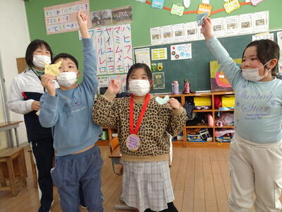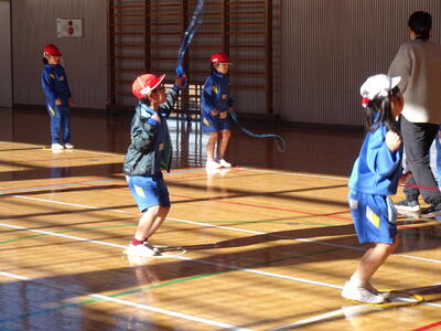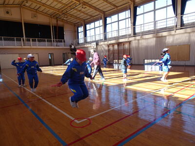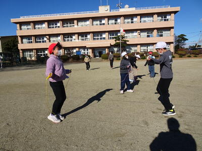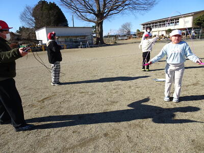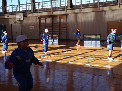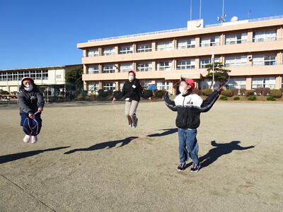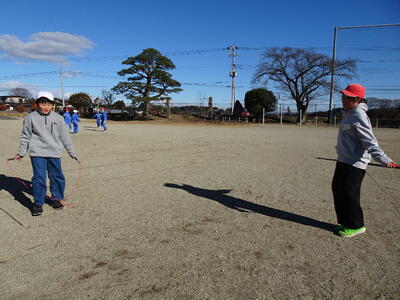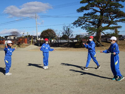 空はどこまでも青く澄み渡り、北からの冷たい風が吹く一日でした。校庭に出ると思わず肩に力が入ります。そんな中でも、宇田川っ子は元気に体力作りに励んでいました。縄跳びです。
