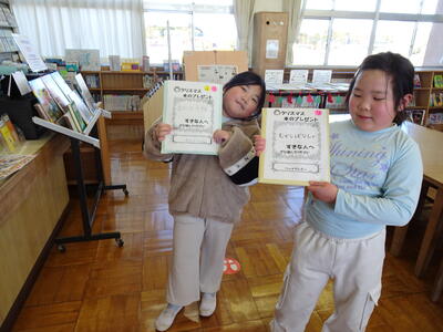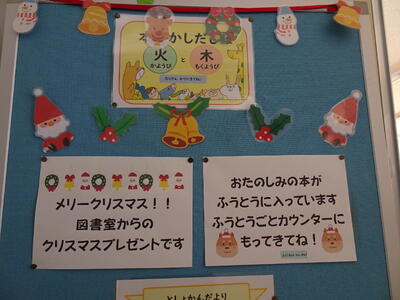 今、図書室では「クリスマス本のプレゼント」を実施しています。