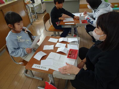 「〇〇が好きな人は読んでください」という封筒の中に、「〇〇」に関する本が入っています。何が入っているかは、借りてみないと分かりません。宇田川っ子の皆さん、図書室へ行ってみよう!