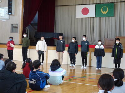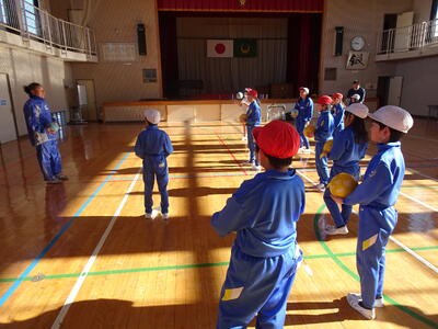 二人組での動きは、かけ声がとても大切です。子供たちの元気な声が、体育館に響いていました。