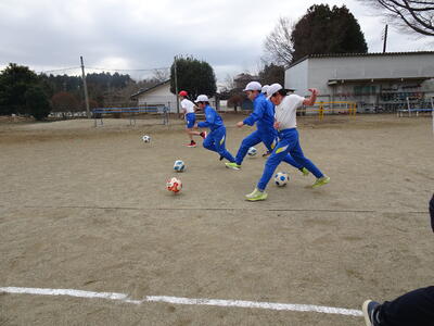 1、2、3、4年生が、サッカー教室を行いました。先生は、エトスサッカーアカデミーの増子さんです。