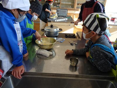そして最後は、食欲の秋。5年生が、家庭科の調理実習でご飯とお味噌汁を作りました。