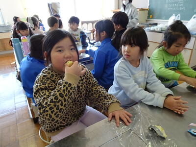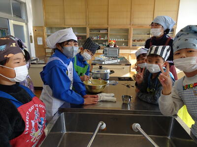 いよいよ試食です。ちょっとお焦げもありましたが、それはそれでおいしかったようです。特にお味噌汁が上手にできて、みんな口を揃えて「おいしかった!」と言っていました。