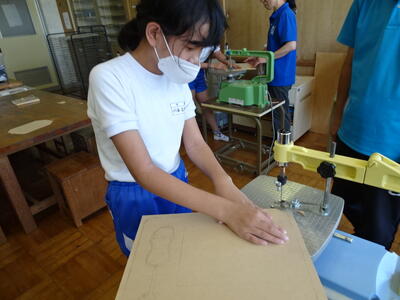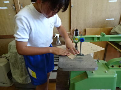5年生が図工で伝言板作りをしていました。慣れない電動糸鋸を使っての作業でしたが、段々できるようになってきました。