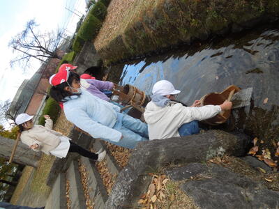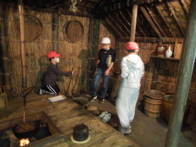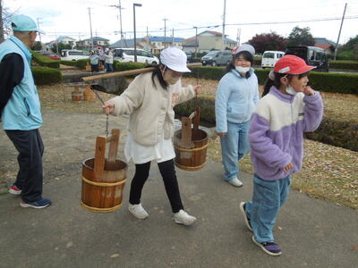 そして、もっこ運び体験、水運び体験をしました。実際にやってみるとその大変さがよく分かりますね。