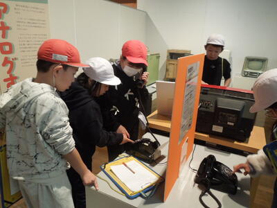 館内では、石ぐら会の方から開拓当時の生活の様子について教えていただきました。特別展では、昭和の展示が。黒電話を見て「どうやって使うの?」。初めて見る子も多かったようです。