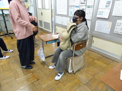 お話を聞いた後に、妊婦体験と赤ちゃん人形の抱っこ体験をしました。