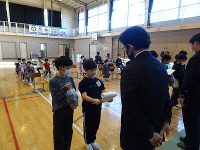 児童代表のあいさつ、来賓紹介に続き、代表児童が一人一人に感謝の手紙と、お花をお渡ししました。