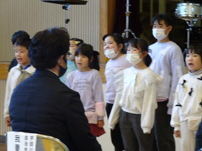 御来賓の皆様、今日はお忙しい中御出席ありがとうございました。子供たちの感謝の気持ちを感じていただけたら幸いです。地域の皆様から日頃よりいただいている御支援は、「地域とともにある学校」を作る上で欠かせない大切なものと考えております。今後とも御支援、御協力のほどよろしくお願いいたします。