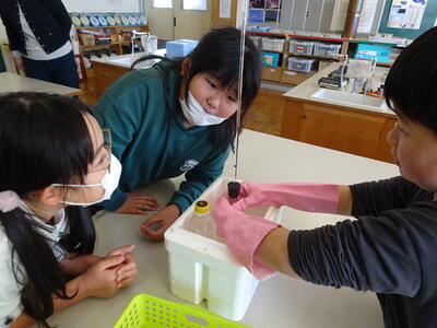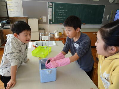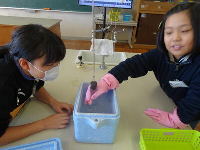 冷やすと、元に戻っていきました。このことから、水は温めると体積が大きくなり、冷やすと小さくなるということが分かりました。理科の実験は、目で見て体験して理解することができるので、子供たちも大好きです。