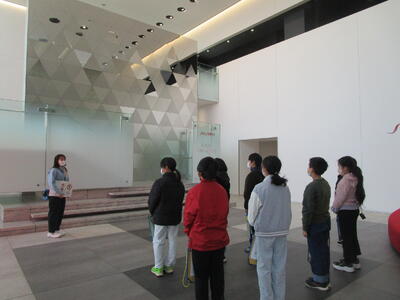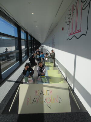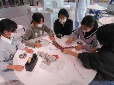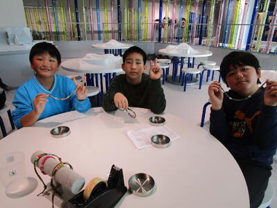 5年生が、資生堂の工場見学に行きました。説明を聞いたり見学をしたりした後、紫外線に当たると色が変わるブレスレット作りを体験しました。