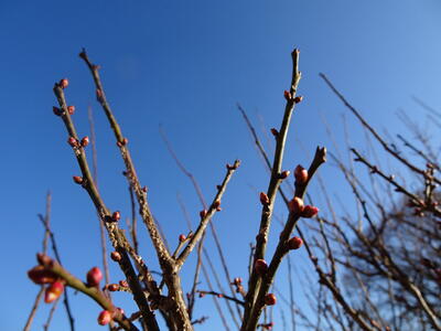 冬になり、葉を落とした樹木ですが、もう花の準備をしています。