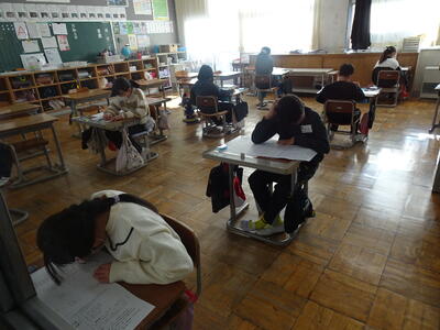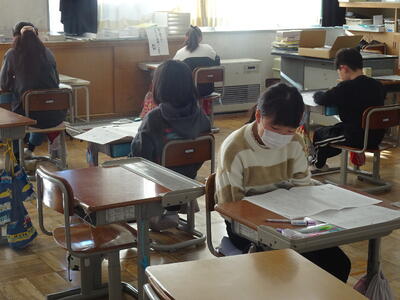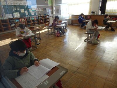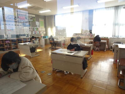今日は、3年生以上が「市学力確認テスト」を実施しました。3、4年生は国語と算数、5、6年生は、国語、算数、理科、社会です。子供たちは、今回のテストに向けて復習に取り組んできました。各学年とも子供たちが一生懸命に問題に取り組んでいました。