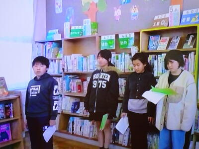 朝の活動は、図書委員会による集会でした。委員の子たちが、図書室の正しい使い方について、寸劇を入れながら発表しました。