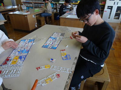みんな集中して組み立てていきます。プラモデルを作った経験はあまりない子が多かったです。