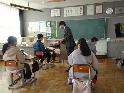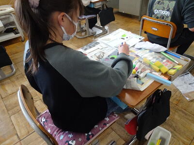 6年生の外国語は、小中一貫教育の一環で、親園中学校の先生が来て授業をしてくださいました。6年生は少し緊張気味に、自己紹介の文章を考えていました。