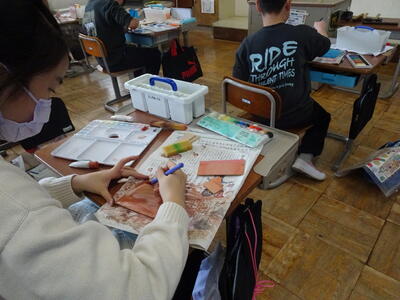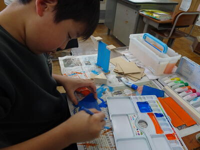 色を塗って接着剤で付けていきます。後で使うのが楽しみですね。