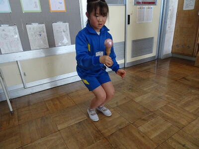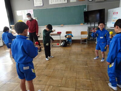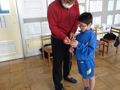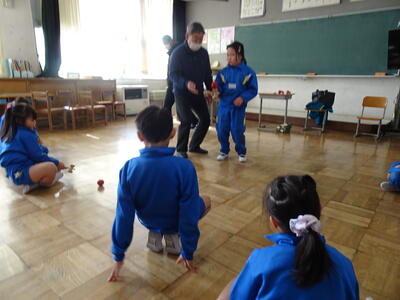 1・2年生が、生活科の時間にけん玉体験をしました。講師の先生は、主任児童委員でけん玉名人の鈴木さんです。