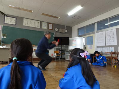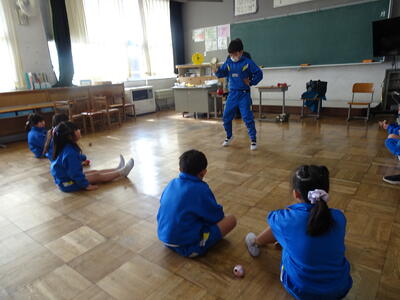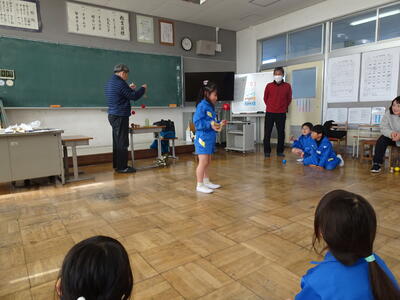鈴木さんからいろいろな技を見せていただきました。初めて見る大技に、子供たちから歓声が上がり、拍手喝采でした。