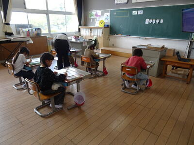 1年生は小学校生活2日目。今日も学ぶことがたくさんありましたが、先生の話を聞いて落ち着いて取り組んでいました。