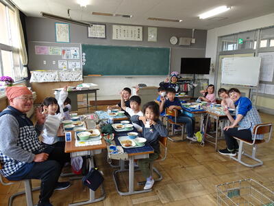 給食の時間。1年生苦手なものも頑張って食べています。