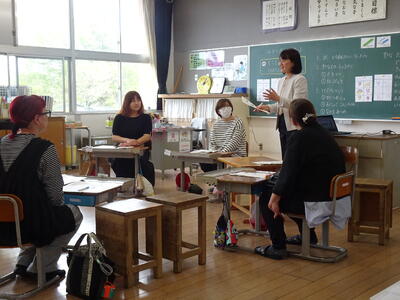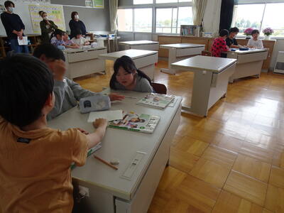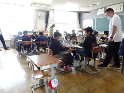 3・4、5・6年生は道徳の授業でした。今年は、3・4、5・6年生は二つの学年が一緒に道徳を学習します。より多くの意見や考えに触れ、自分の考えを深めることができると考えています。