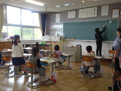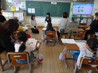 授業参観では、普段より緊張気味の子供たちでした。1年生にとっては初めての授業参観でしたが、みんなの前でしっかり自己紹介したり、楽しく活動したりできました。