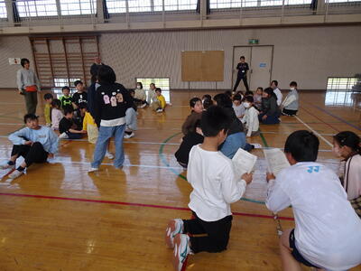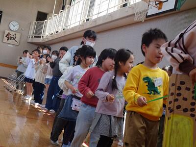 6年生が考えた活動は、「じゃんけん列車」「猛獣狩りに行こうよ」「宇田川小○✕クイズ」です。全校生が触れ合いながら楽しく活動しました。