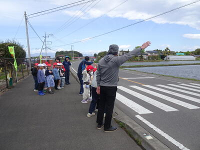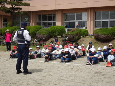子供たちには、「ルールを守ること」「自転車に乗るときはヘルメットをしっかりかぶること」「飛び出さず左右確認すること」「車を信用しないこと」などを、守って欲しいこととして話しました。御家庭におかれましても、機会あるごとにお話しいただけたらと思います。