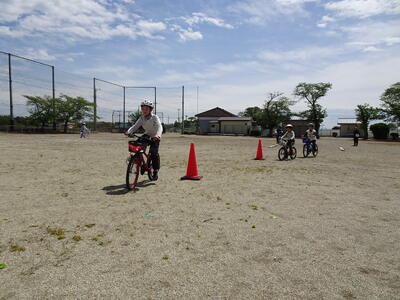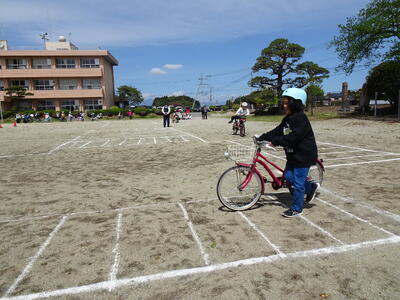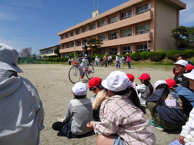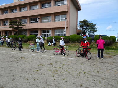 朝は雨模様でしたが、無事校庭で実施することができました。スクールサポータ-の方と親園駐在所の方を講師に、1、2年生は道路横断の仕方、3年生以上は自転車の乗り方を学びました。保護者の皆様には、自転車の準備お世話になりました。