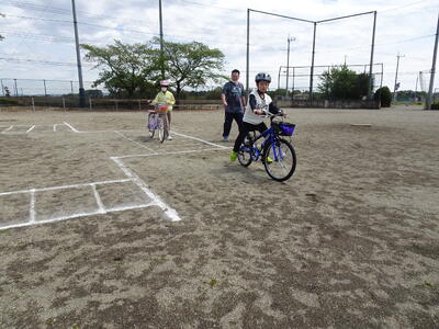 3年生以上は、横断歩道を自転車で渡るときは、自転車から降りて押しながら横断することを徹底して練習しました。また、自転車を上手く運転できるように練習しました。
