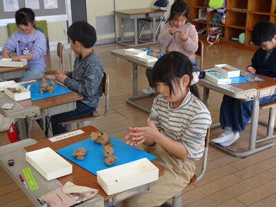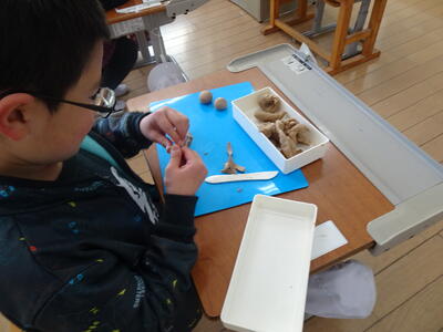 1年生の図工の時間は粘土を使いました。「街」や「公園」「動物園」など思い思いに表現していました。