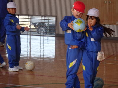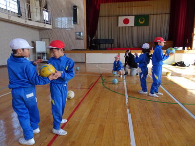 ペアやグループでの動きは、声を出すことがポイントですね。みんな声を掛け合ってボールを渡していました。