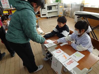 上手にできたチーム、声が出ていたチーム、最後まできちんとやっていたチームには、グリーンカードが。ペアやグループで協力できるって素晴らしい!